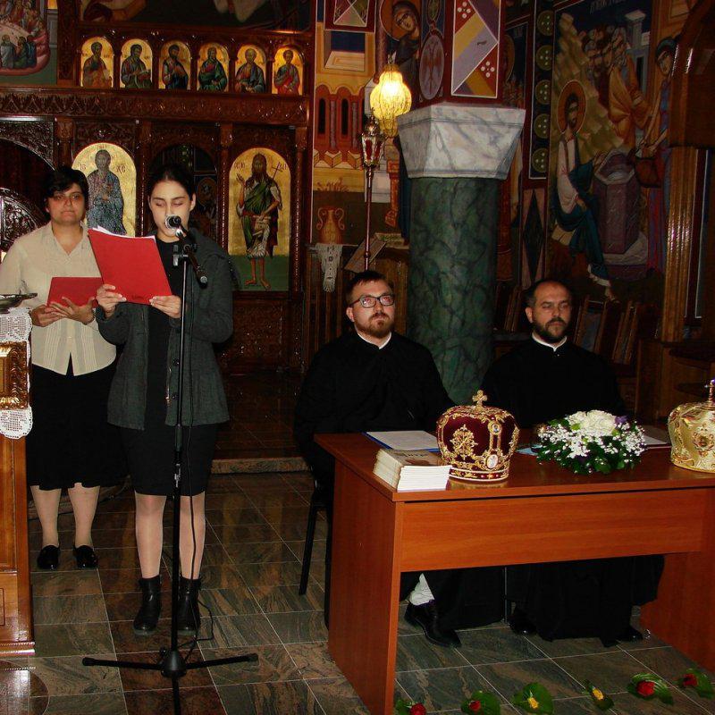 Program, koga su vodile nastavnica Nataša Vukadinović iz Osijeka i Teodora Đuranović, učenica II osječke gimnazije, održan je u hramu Uspenja Presvete Bogorodice u Osijeku, a nakon istog upriličen je svečani prijem u prostorijama Crkvene opštine Osijek.