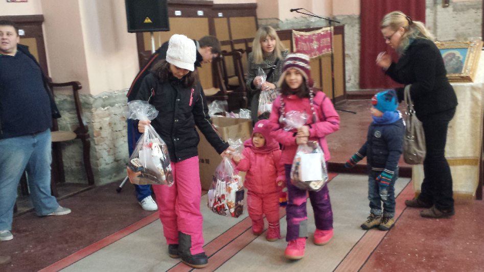 Vukovar, 27.01.2014. - Povodom obeležavanja Svetog Save, prvog srpskog Arhiepiskopa i prosvetitelja, Čuvari srpskog identiteta i srpskih običaja uspeli su zahvaljujući donaciji Kontrole letenja Srbije i Crne Gore SMATSA d.o.o. iz Beograda, obezbediti i organizirati podelu 500 paketića deci-deklamatorima u 14 parohija Srpske pravoslavne crkve u regiji i deci dečijeg vrtića "Vukovar 2" u Vukovaru.